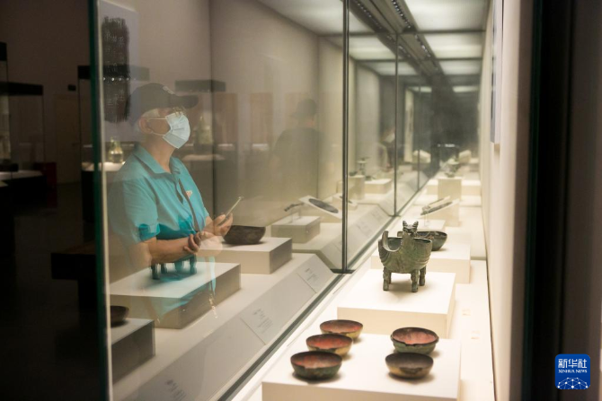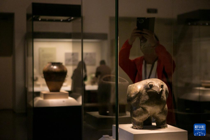 6月7日,观众在中国国家博物馆拍摄“鹰形陶鼎”。新华社记者 李京 摄