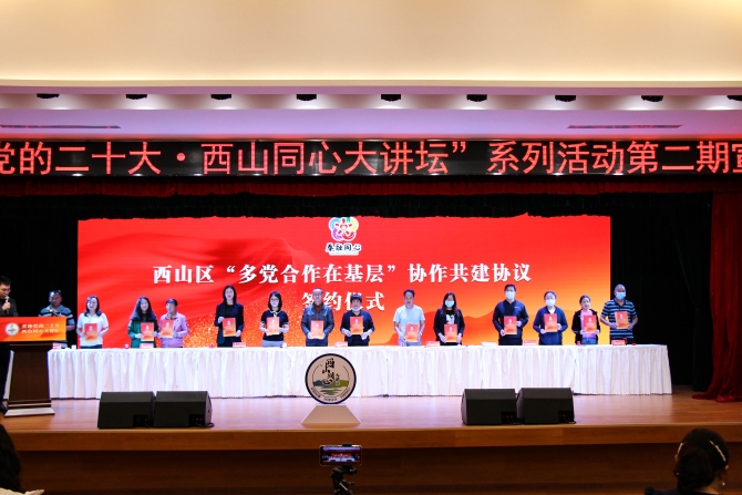 为推动西山区“多党合作在基层”创新实践工作落地见效,充分发挥各民主党派在基层社会治理中与基层协商民主中的职能作用,当天,由7个西山区民主党派和对应的7个“多党合作在基层”扩面社区一同签定了《西山区“多党合作在基层”协作共建协议》。他们分别是:团结街道龙潭社区和民革西山区基层委、棕树营街道白马西区社区和民盟西山区基层委、永昌街道益康路社区和民建西山区基层委、金碧街道西坝南社区和民进西山区基层委、团结街道妥排社区和农工党西山区基层委、前卫街道拥护社区和致公党西山区基层委、碧鸡街道观音山社区和九三学社西山区委员会。