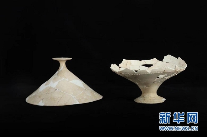 这是甘肃庆阳南佐遗址出土的白陶带盖圈足簋。(图片由南佐遗址联合考古队提供)