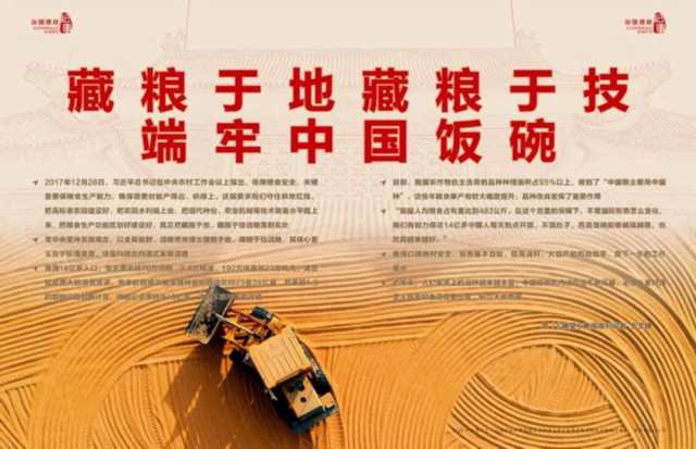 2017年12月28日,习近平总书记在中央农村工作会议上指出,保障粮食安全,关键是要保粮食生产能力,确保需要时能产得出、供得上。这就要求我们守住耕地红线,把高标准农田建设好,把农田水利搞上去,把现代种业、农业机械等技术装备水平提上来,把粮食生产功能区划好建设好,真正把藏粮于地、藏粮于技战略落到实处。