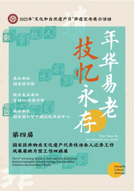 6月10日至7月10日,“年华易老技·忆永存”展在国家图书馆总馆北区二层大厅展出。展览通过“认识非遗”“为什么记录”“工作回顾”“优秀成果展示”和“展望”等章节,系统展示国家级非物质文化遗产代表性传承人记录工作的工作历程和优秀成果。观众可现场二维码在线观看记录工作优秀成果的综述纪录片。