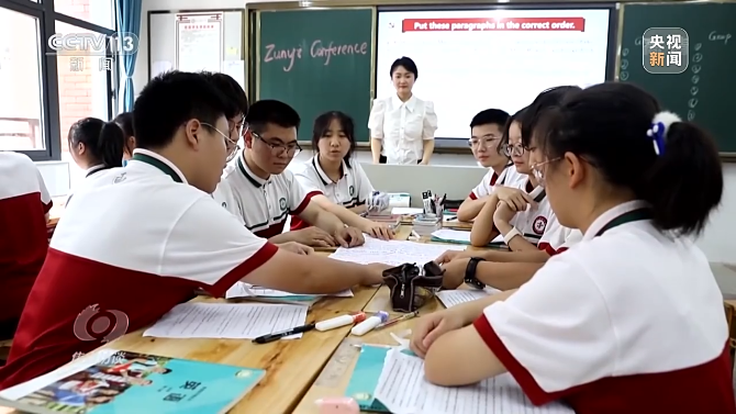 在遵义市第一中学高一(7)班,刘娜娜老师正在给学生们上一堂特殊的红色故事英语课。课堂上播放的视频是她前些天专门去遵义会议纪念馆拍摄的。