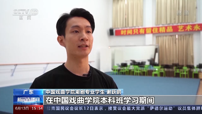 中国戏曲学院潮剧专业学生 谢跃鹏:本身我是武生行当,在中国戏曲学院本科班学习期间,我也是有意识在武戏方面下功夫,希望自己能学到更多规范性的动作,一些高难度技巧。我还希望尽自己所能,把这些知识传承给更多年轻人,把更多的武戏呈现给观众。