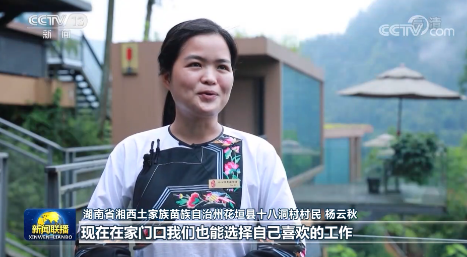 湖南省湘西土家族苗族自治州花垣县十八洞村村民 杨云秋:现在在家门口就能选择自己喜欢的工作,有稳定的收入,不管是村里的面貌,还是我们的生活,都发生了翻天覆地的变化。