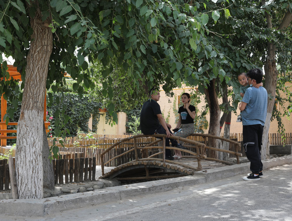 在和田县罕艾日克镇稻香村、和田市古江巴格乡托万特根拉村,道路四通八达,村道两旁家家户户把围墙拆掉或矮化,修葺一新的和田传统“阿依旺”风格民居、葡萄架、菜地、果园尽收眼底,村民们利用自家房屋操办起特色餐饮、农家乐、乐器店、绣坊、民宿等旅游项目。