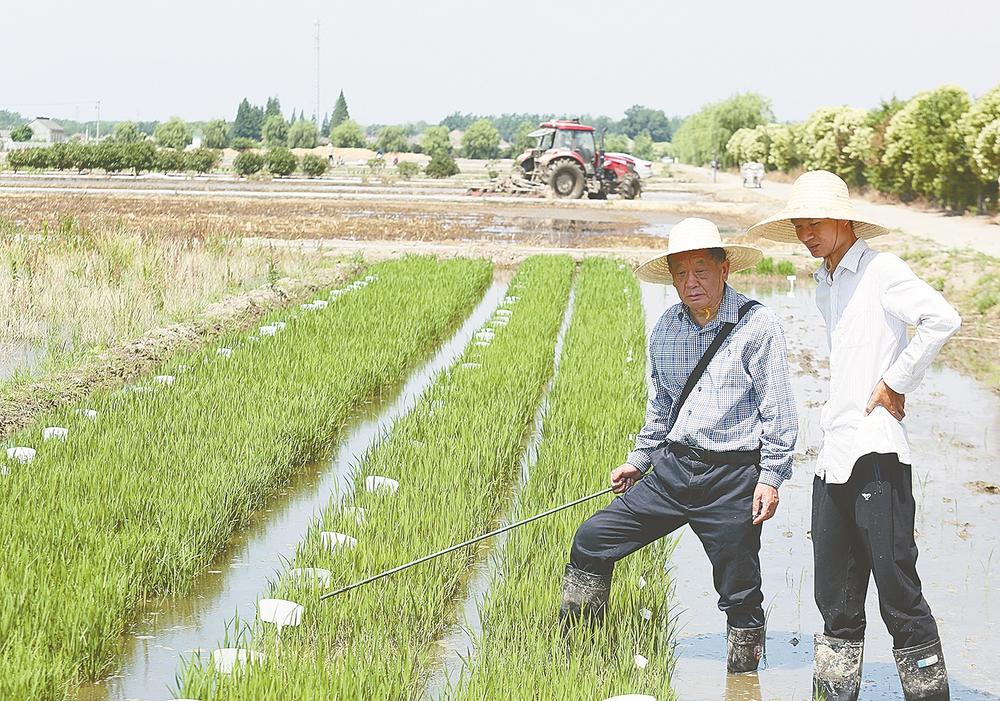 近日,在阜宁县三灶镇十灶村,阜泰谷物种植专业合作社负责人王熙正在田头查看水稻栽插情况,合作社今年还是和江苏阜顺生态农业科技有限公司合作,800多亩地都用来繁种。“一亩地一年种子收入差不多是普通稻麦种植收入的两倍,优质良种很受市场欢迎。”