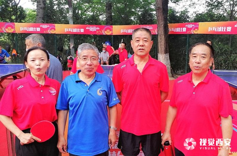 太乙路街办交大社区乒乓球队在李智民(左二)的带领下,为健康快乐而参赛。