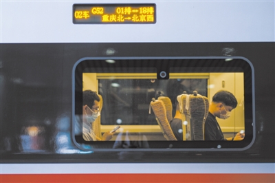 6月20日,旅客乘坐郑渝高铁重庆首发列车(G52次列车)。中新社记者 何蓬磊摄/视觉中国供图