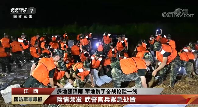 武警江西总队机动支队副支队长 宋桓:经过官兵连续近5个小时的奋战,我们消耗了砂石450余方,装填沙袋15000余个,目前险情得到了有效控制。