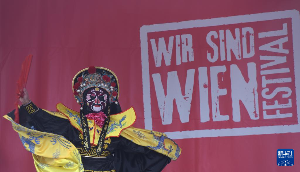 6月22日,在奥地利维也纳,演员在维也纳艺术节“奥地利中国日”活动上表演川剧变脸。新华社记者 郭晨 摄