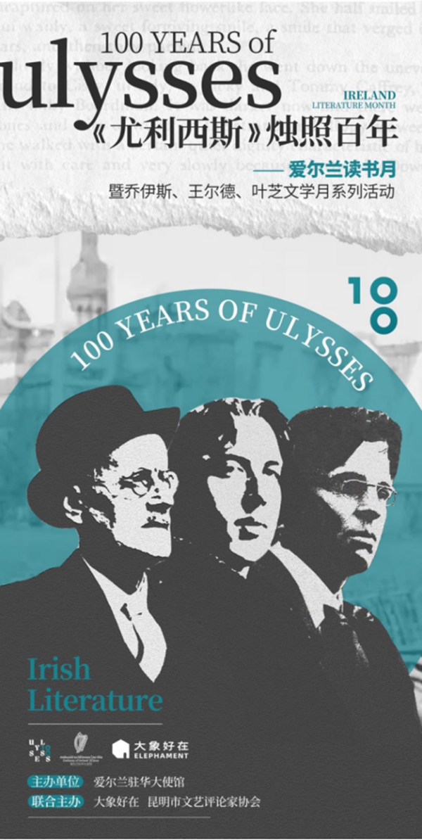 近日,《尤利西斯》烛照百年——爱尔兰读书月暨乔伊斯、王尔德、叶芝文学月系列活动在昆明举办。活动由爱尔兰驻华大使馆联合大象好在、昆明文艺评论家协会共同主办,在“边地”云南,掀起了一场爱尔兰经典作家作品阅读和传播的热潮。
