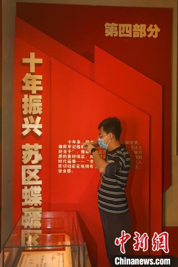 6月28日,赣南等原中央苏区振兴发展战略实施十周年成就展在位于江西赣州的赣州市博物馆开展。本次成就展共分为五个部分,通过文版、图表、视频、图片、实物、复原场景以及声光电等多种展出形式,展现赣南等原中央苏区振兴发展十周年取得的巨大成就。