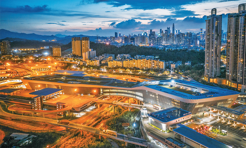 作为构筑深港跨境交通“东进东出、西进西出”大通关格局的重要一极,深圳东部过境高速公路将为服务粤港澳大湾区建设提供一条新的“黄金通道”。图为深圳东部过境高速公路起点莲塘口岸夜景。 新华社发 深圳市口岸办供图