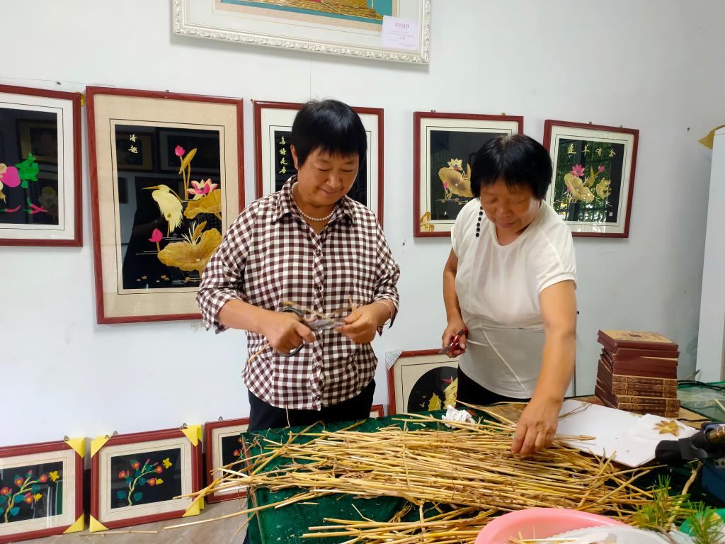 三十里铺镇在孙庄村为李志海安排了两间工作室,免费向村民们传授麦秆画制作工艺。