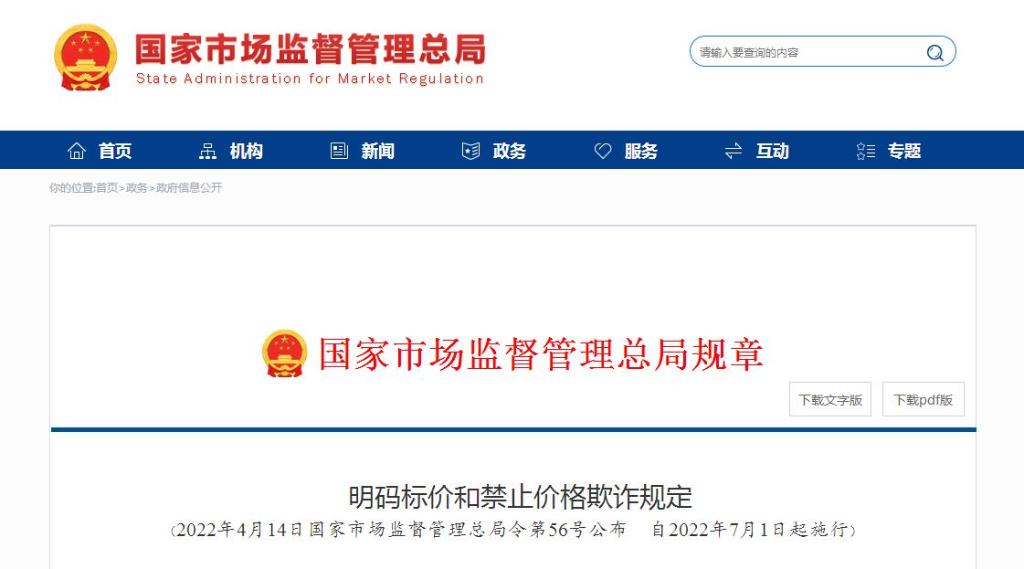 新华社北京7月4日电 记者赵文君 由市场监管总局公布的《明码标价和禁止价格欺诈规定》自今年7月起施行。规定明确七种典型价格欺诈行为、不再过多限制经营者的标价方式、灵活规定网络交易明码标价的形式,对于明码标价规则和价格欺诈行为的认定更加科学合理。