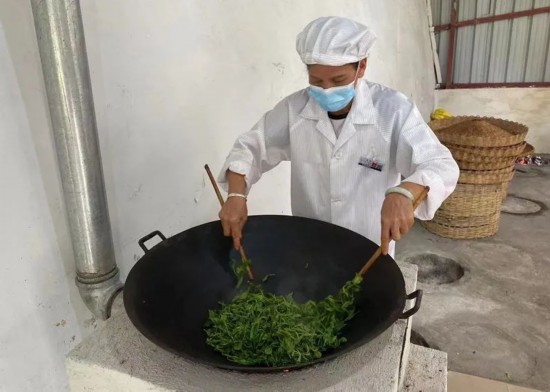 王菊茹正在手工炒茶。王少珠摄