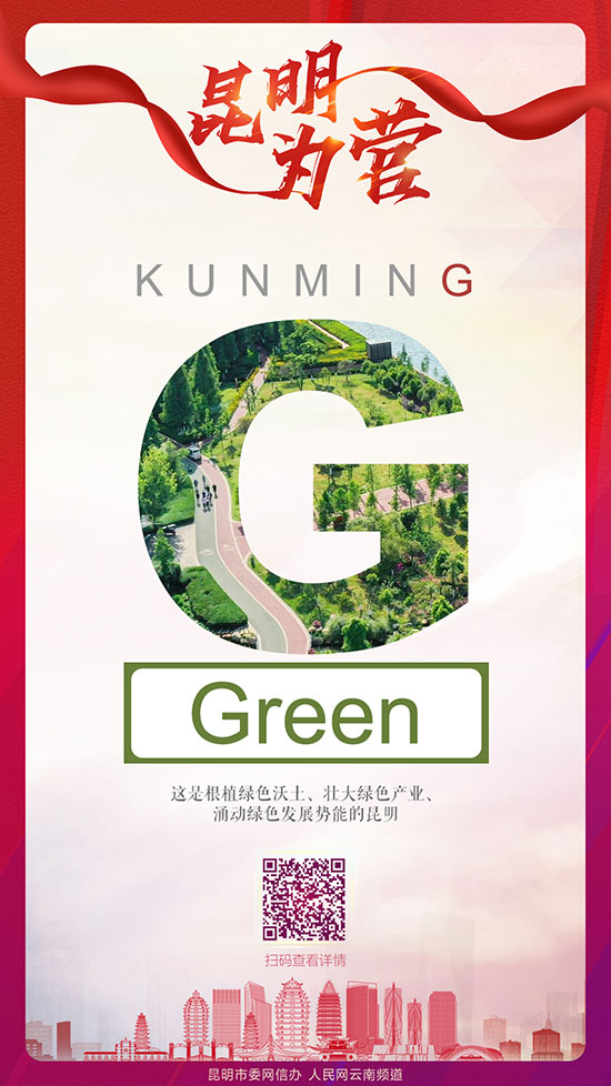 第七个字母G即是Green,这是根植绿色沃土、壮大绿色产业、涌动绿色发展势能的昆明。