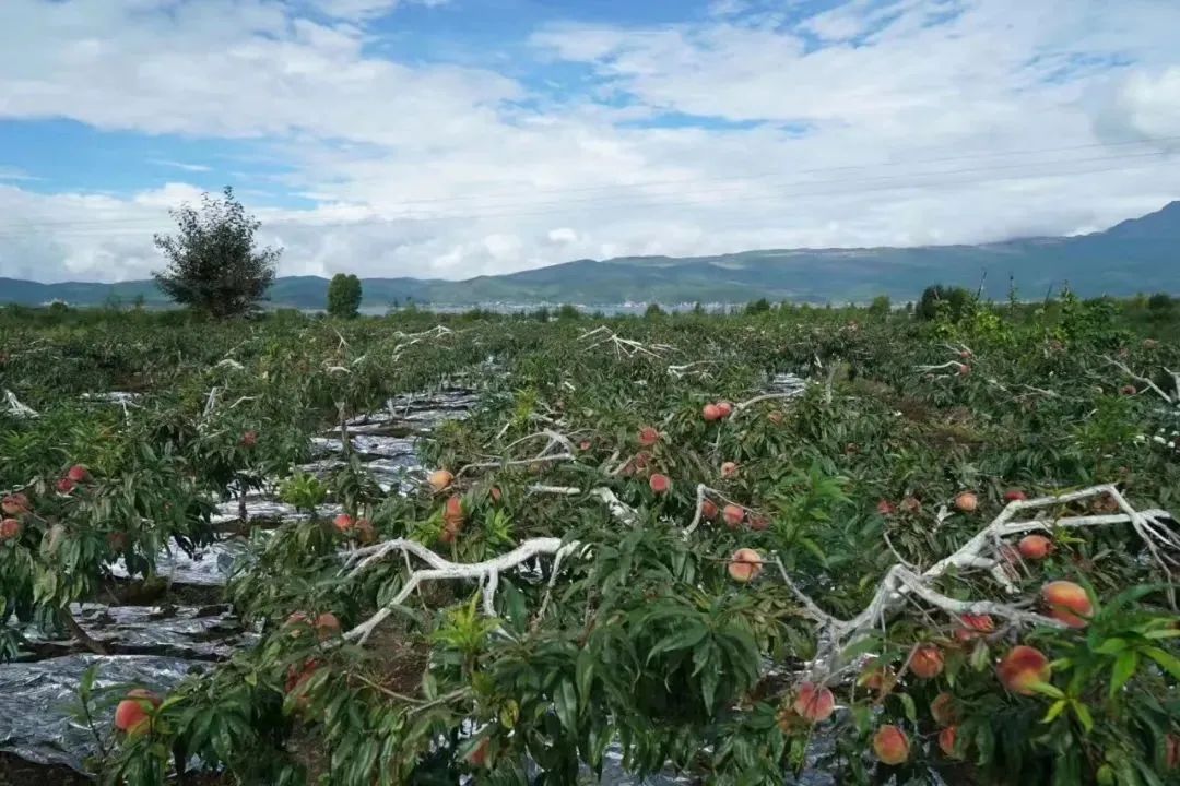 拉市海畔的雪桃基地。(记者 钱磊 摄)