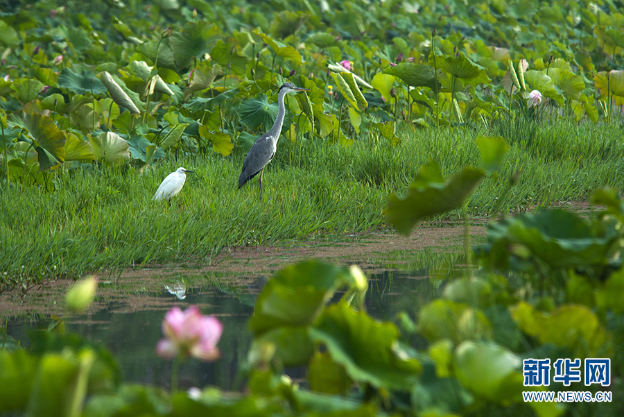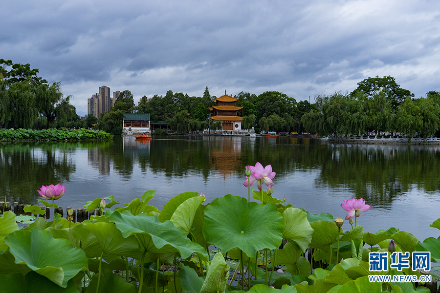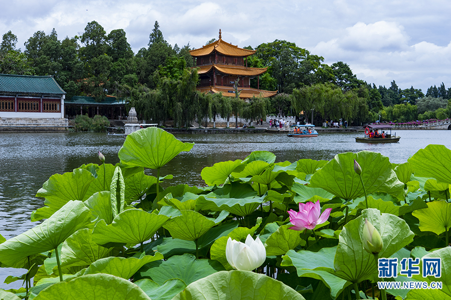 近日,在云南省昆明市大观公园、嵩明县嵩阳街道普渡社区果马河畔等地,荷花相继绽放,构成一幅生态美景。(新华网发 郑益 刘文贵 /摄)