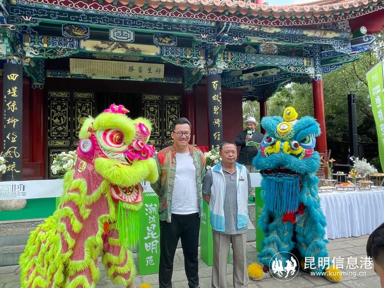 锣鼓喧天、金狮舞动,伴随着主持人热情洋溢的开场,活动正式拉开了序幕,翠湖·也许艺术馆的主理人杨毅杰和翠湖公园主任郭宏伟执笔为舞狮点睛,寓意福开新运。