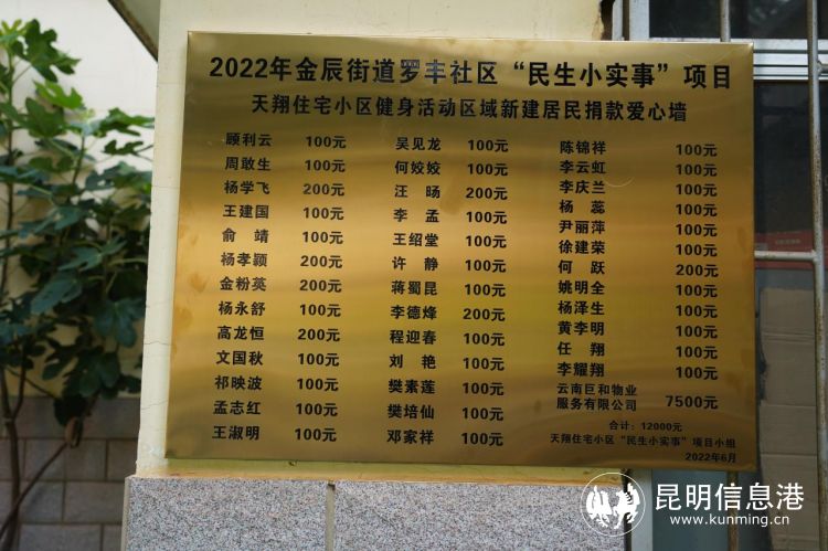群众利益无小事,民生问题大于天。改善民生,谋民生之利,解民生之忧,关键就是要解决好人民群众最关心最直接最现实的利益问题,从细、从小、从实、从惠入手,一件也不能少。盘龙区金辰街道罗丰社区辖区天翔住宅小区于2004年建成交付使用,有3栋楼房7个单元,共64户,是这个社区最小的小区。因小区较小,小区里没有一个供居民休息、歇脚、活动的地方。再加上小区建成时间较早,交付使用时未配置相应的健身活动场所,随着居民生活大环境的不断改善及健身路径项目的实施与推行,居民对健身活动场所的需求日益增加。