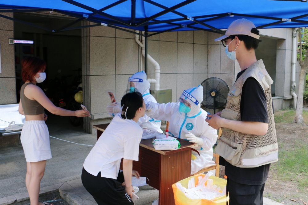 “大白”们闷热的工作环境也牵动着居民的心,“第一天下午,有居民看到工作人员很热很辛苦,问我们是否可以早上做核酸,于是我们把第二天和第三天的检测时间都调到了早上。”盈丰街道合丰社区党总支书记陶柏军说。