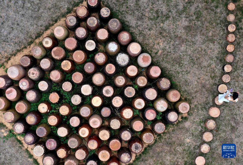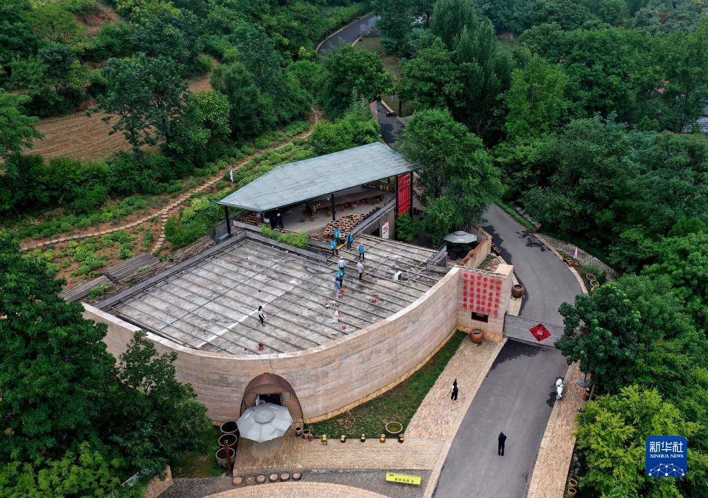 游客在“洛阳三彩陶艺村”游览(7月12日摄,无人机照片)。新华社记者 李安 摄