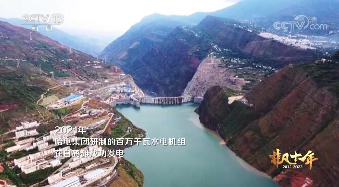 2021年,哈电集团研制的百万千瓦水电机组在白鹤滩成功发电。