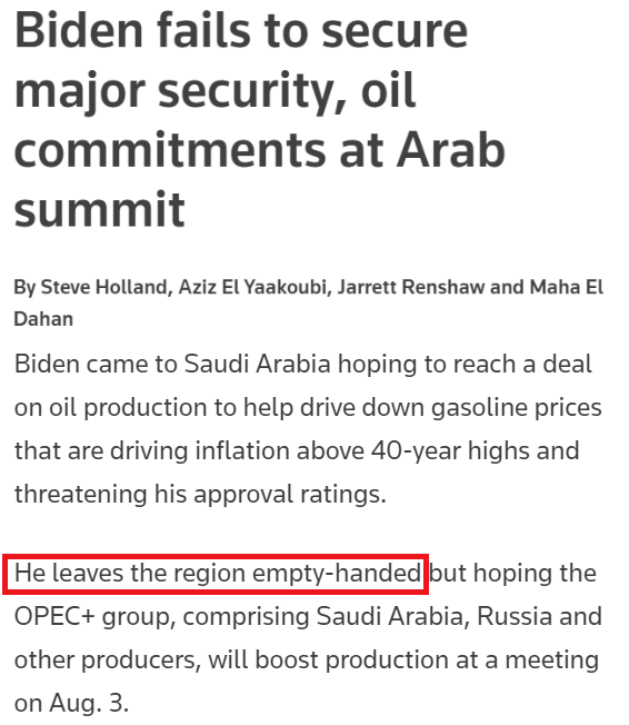 路透社:拜登的“找油”之旅空手而归