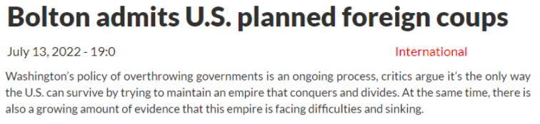 正如《德黑兰时报》所说,推翻他国政府是美国通过维持一个“既热衷征服又日益分裂的帝国”而生存的唯一方式。但在这个持续的过程中也有越来越多的证据表明,这个帝国正面临着困难和衰落。
