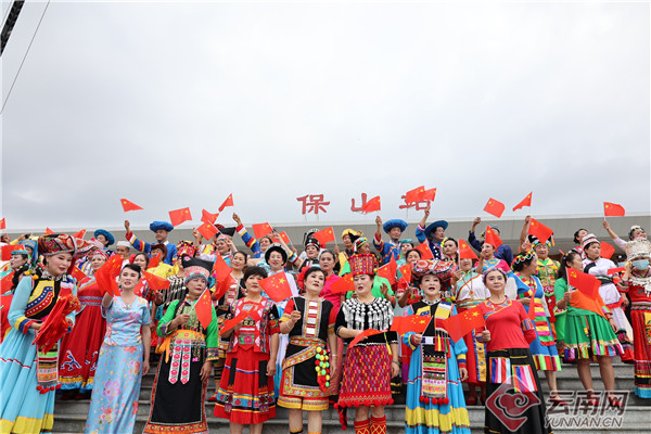 7月22日上午,崭新的保山火车站人潮涌动,各族群众欢歌笑语,热烈庆祝大瑞铁路大理至保山段正式开通运营。