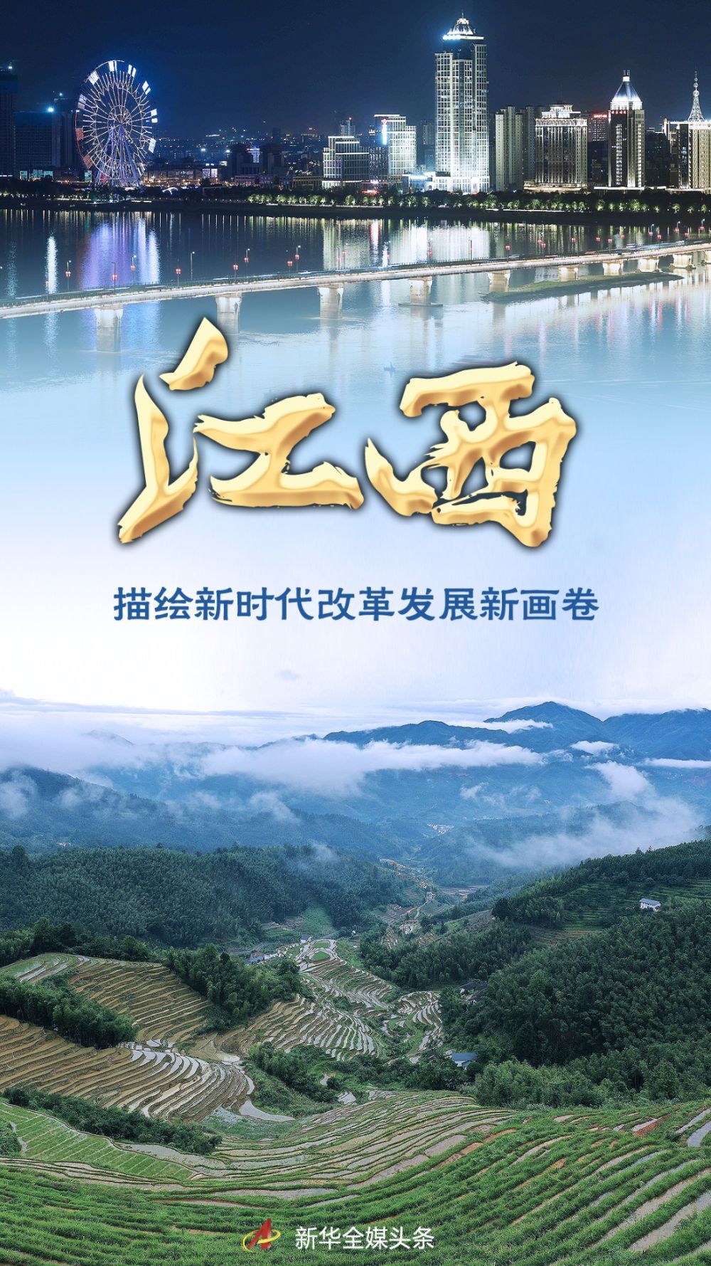 在习近平新时代中国特色社会主义思想指引下,江西聚焦“作示范”“勇争先”目标要求,凝心聚力、拼搏实干,奋力迈出全面建设社会主义现代化江西的更大步伐。(文字记者:沈锡权、李兴文、郭强、余贤红 视频记者:吴龙、黄和逊、郭杰文、余刚、彭菁、黄锦添(报道员)、王小龙(报道员) 海报设计:赵丹阳)