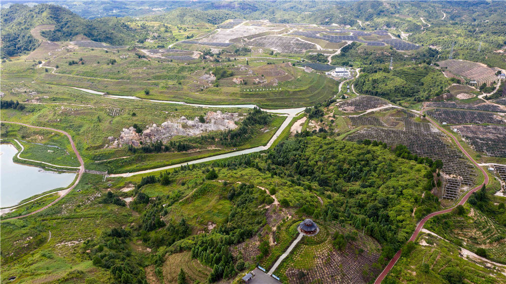 这是位于江西省寻乌县文峰乡上甲村附近的生态修复区(2020年7月19日摄,无人机照片)。从前这里是大面积的废弃稀土矿山。新华社记者 彭昭之/摄