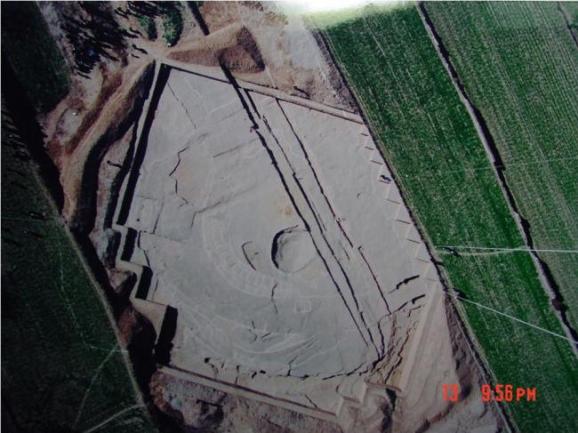 2003 年春季,中国社会科学院考古研究所⼭⻄⼯作队与⼭⻄省考古研究院、临汾市⽂物局组成联合考古队,对这⽚⼟地进⾏初步的发掘,发现该⽚区域出现了⾄少两道“弧形”的夯⼟带。便提出⼀个猜测:如果是柱间缝隙,⽽它们⾯对的恰恰是塔⼉⼭,塔⼉⼭位于东⽅⼜恰是太阳升起之处,那会不会是通过缝隙来观测⽇出呢?