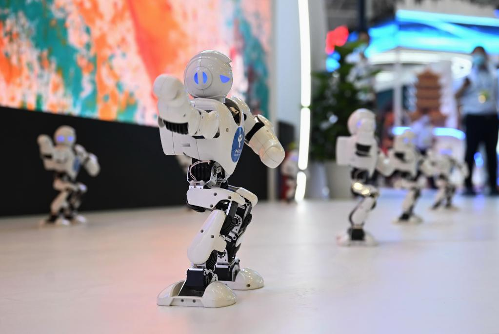 第五届数字中国建设成果展览会上的机器人在舞蹈表演(7月22日摄)。