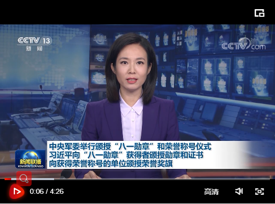 中央军委举行颁授“八一勋章”和荣誉称号仪式 习近平向“八一勋章”获得者颁授勋章和证书 向获得荣誉称号的单位颁授荣誉奖旗