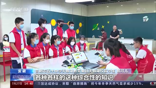 合肥市五十中学天鹅湖教育集团天鹅湖校区学生 杨可儿:我们可以在博物馆里面学习到像地理、生物、历史等等各种各样的这种综合性的知识。我觉得相对于我们原来的那种作业就更加新颖、直观、生动。
