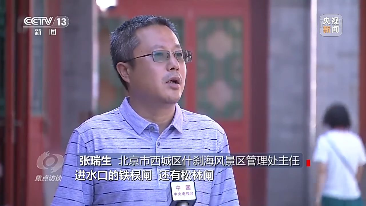 北京市西城区什刹海风景区管理处主任 张瑞生:进水口的铁棂闸,还有松林闸,这些都是用历史遗留下来的遗迹,通过改善、修缮保留下来的,最终目的还是还湖于民、还路于民,让老百姓有一个更好的亲水环境,同时展示我们什刹海水的文化。