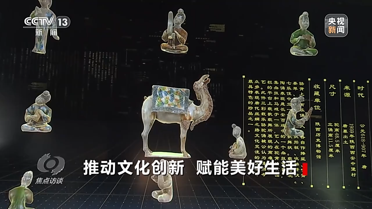 一个游客正在欣赏国家一级文物唐三彩骆驼载乐俑,虽然他在屏幕前一步未动,一声没出,但屏幕上文物的图案却一直在变化,这些变化其实是由参观者的意念来控制的,这听起来有些不可思议,但脑波文物交互系统让这变成了现实。