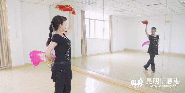 时下正值盛夏,19名“银发姐姐”在百余平方米的舞蹈教室内,手持扇帕,一跷一崴,踏歌和乐,这是呈贡区老年大学“花灯歌舞”的课堂。