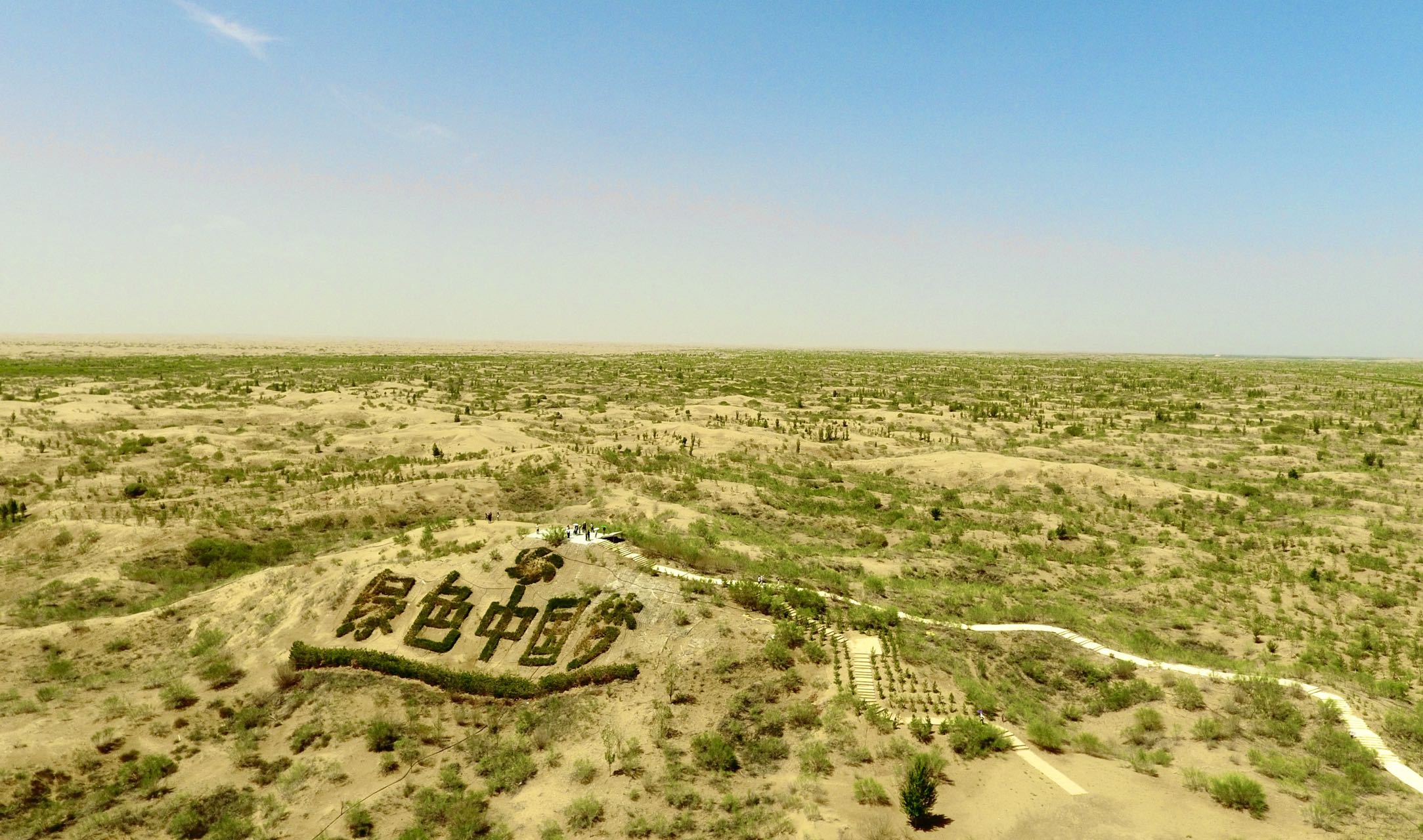 在行程中,外国网红来到了库布其沙漠七星湖景区的沙峰绿谷,站在观礼台上,延绵数公里的沙丘和伸向沙漠腹地的“绿色”,展示着生态治理的成果,“树长沙降、削峰填谷”是治沙人30年积淀的种树经验和技术成果。在观礼台一侧,由5600株沙地柏组成的“绿色中国梦”五个大字,象征着56个民族共同的绿色梦。