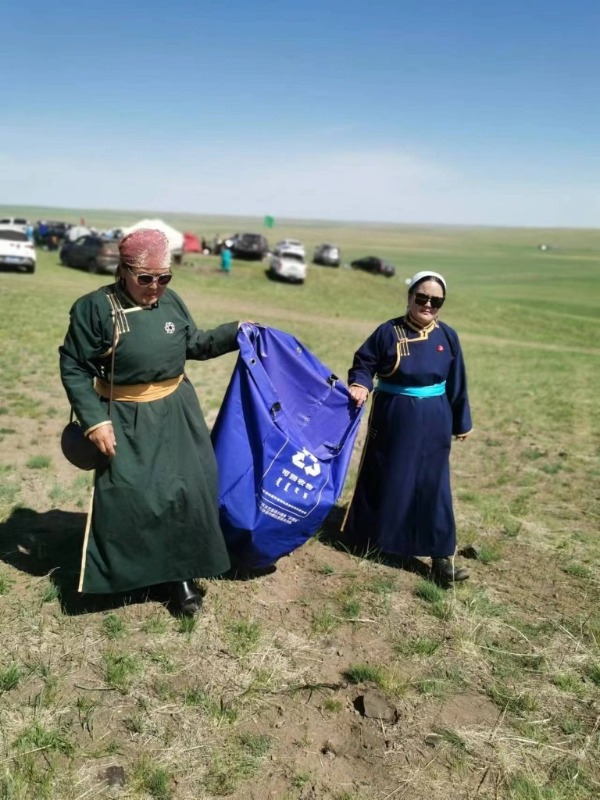 7月18日,呼伦贝尔市新巴尔虎右旗克尔伦苏木蒙古包前,一组三色分类垃圾袋迎风飘扬,在巾帼力量的监督引领下,广袤草原也有了垃圾分类,绿色草原得以实现垃圾无害化、减量化。
