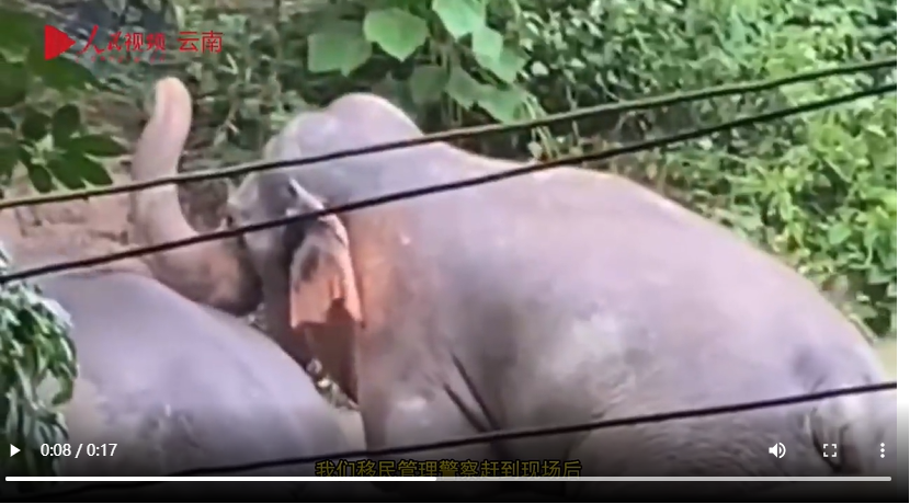 7月26日下午,云南西双版纳边境管理支队勐润边境派出所接到群众反映,有亚洲象在附近河里洗澡。移民管理民警接报后,第一时间联系森林公安、林业等部门,运用无人机监测象群实时动态,并对亚洲象戏水附近区域进行警戒,提醒附近群众不要靠近,避免惊扰亚洲象,造成安全隐患。