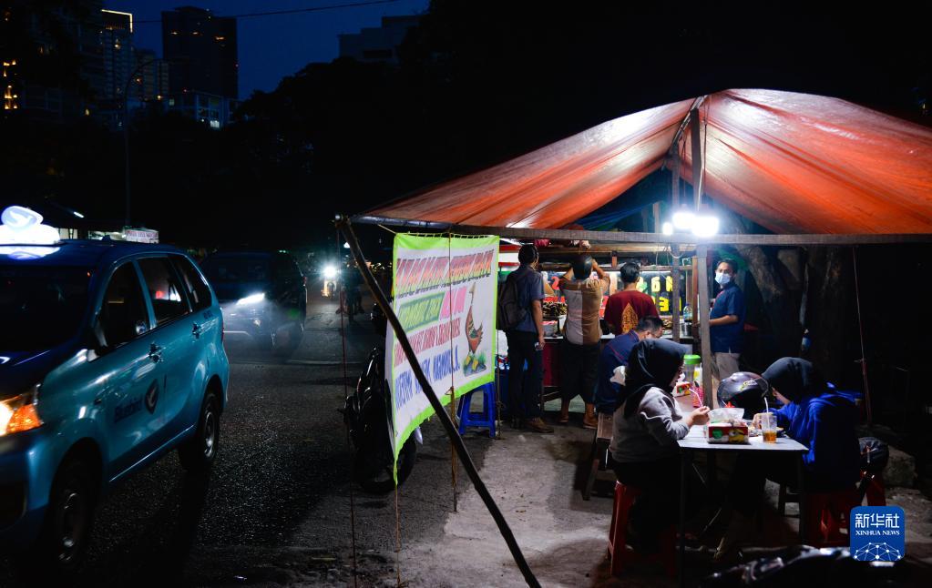 这是8月1日晚拍摄的印度尼西亚首都雅加达街头的小吃摊。新华社记者 徐钦/摄