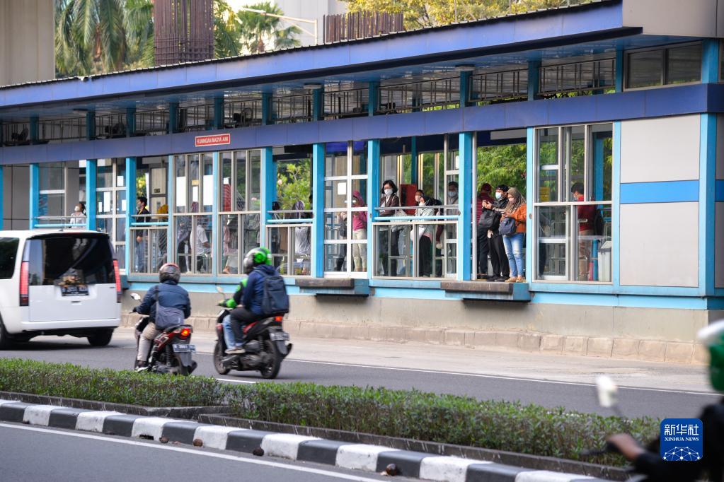 8月1日,人们在印度尼西亚首都雅加达街头等公交车。新华社记者 徐钦/摄