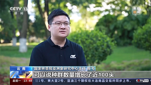 国家林草局亚洲象研究中心主任陈飞:尤其是最近10年,可以说整个数量增长近100头,特别是监测到个体小象的数量也是越来越多。