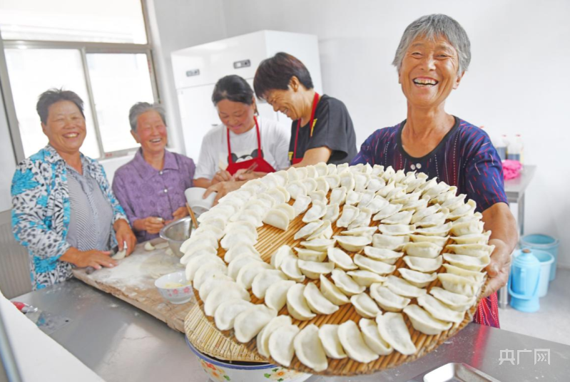 “70岁以上老人就能来这儿吃饭,一天5块钱吃两顿饭,有荤有素,吃得很好,我们这些上年纪的老人都很高兴。”蒋玉环对现在的生活赞不绝口,“从前,真是做梦也没想到能过上这样的生活!”