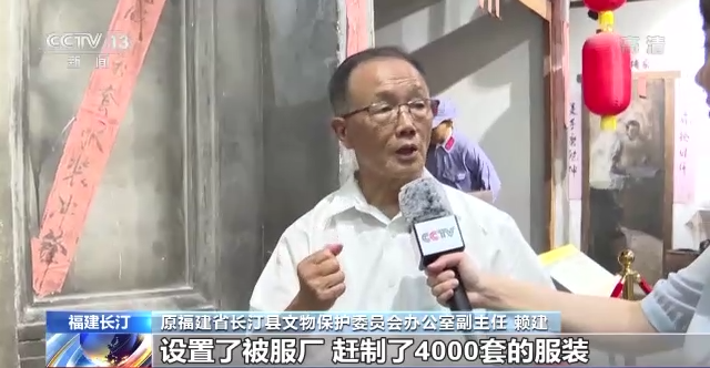 原福建省长汀县文物保护委员会办公室副主任 赖建:红四军首次入闽,解放了汀州城以后,设置了被服厂,赶制了4000套的服装,这使我们红军第一次统一了军服。它有军帽、军衣、腰带和绑带。