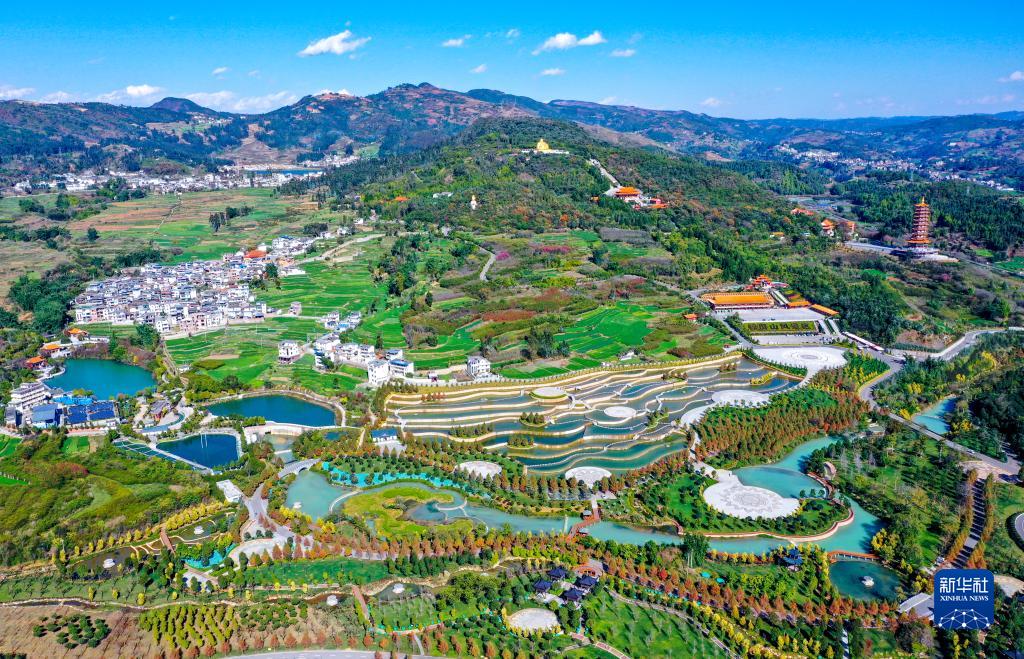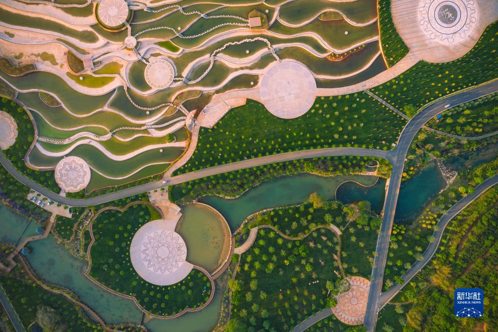 这是云南省弥勒市甸溪河湿地公园(无人机照片,2020年4月19日摄)。 新华社发(李昱廷摄)