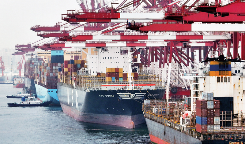 2022年前7个月,我国外贸进出口总值23.6万亿元,同比增长10.4%。图为2022年7月29日拍摄的山东港口青岛港前湾集装箱码头(无人机照片)。 新华社记者 李紫恒/摄